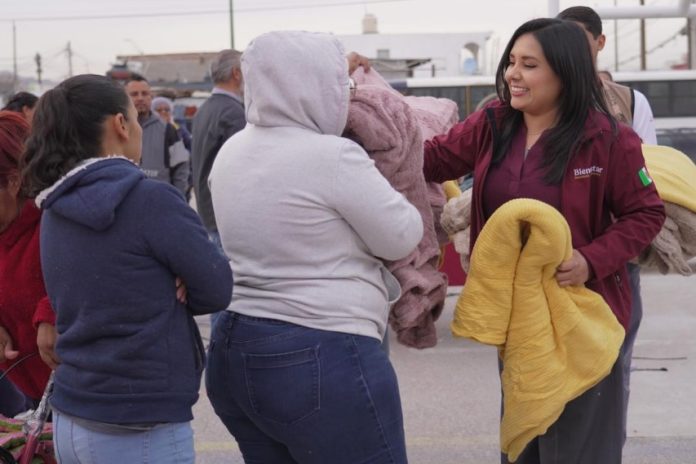 Ciudad Juárez.– La delegada de los Programas para el Bienestar en el estado de Chihuahua, Mayra Chávez, encabezó jornadas de entrega de cobijas en distintas colonias del municipio, ante la permanencia de las bajas temperaturas, como parte de las acciones de atención y acompañamiento a las familias que más lo necesitan durante la temporada invernal.
